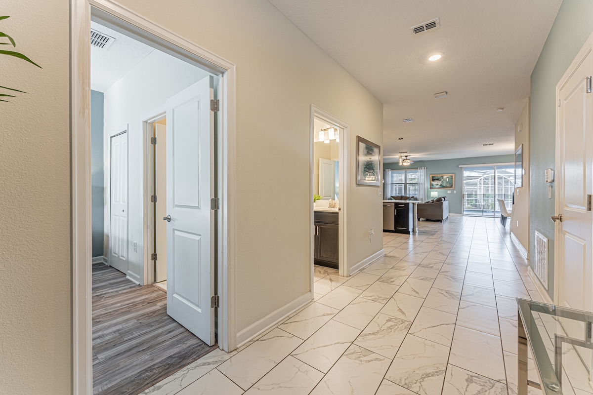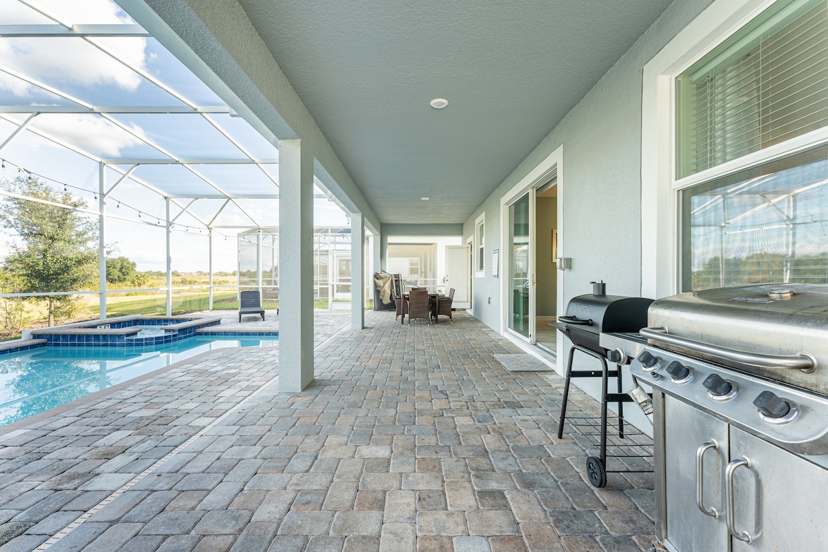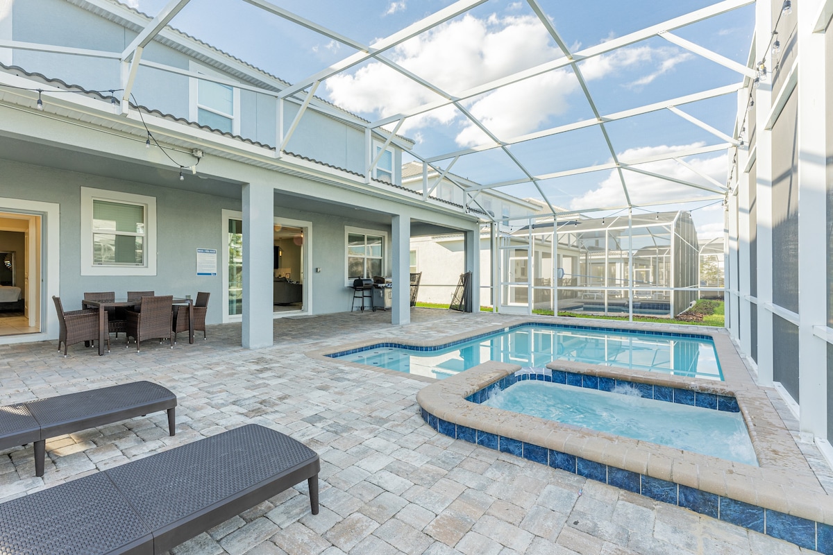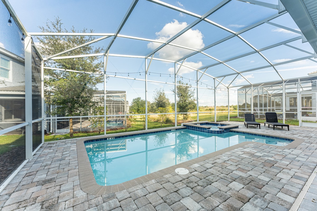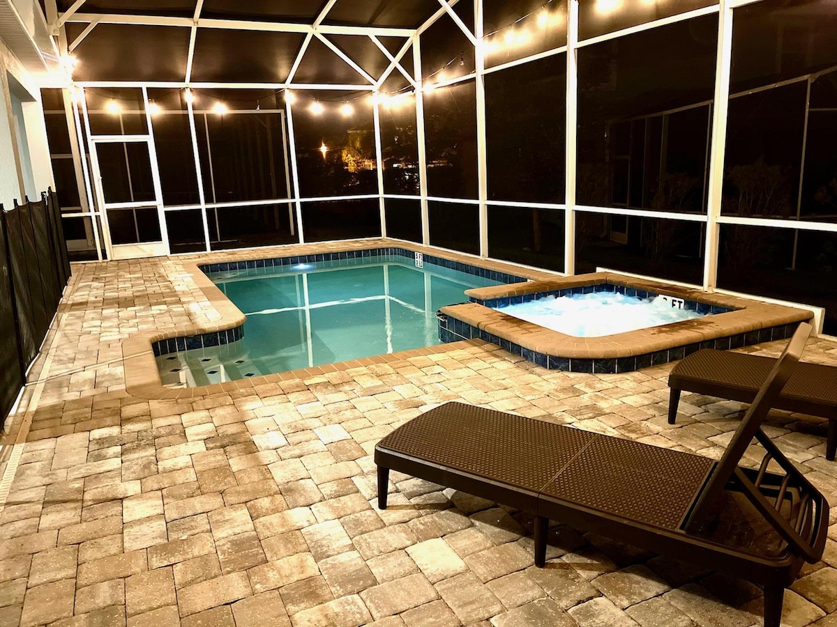 - Screened in private swimming pool and spillover spa (optional heating)