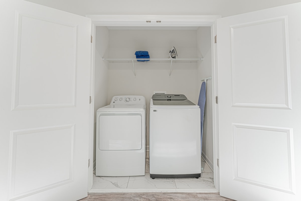 - Washer, dryer and fully equipped kitchen